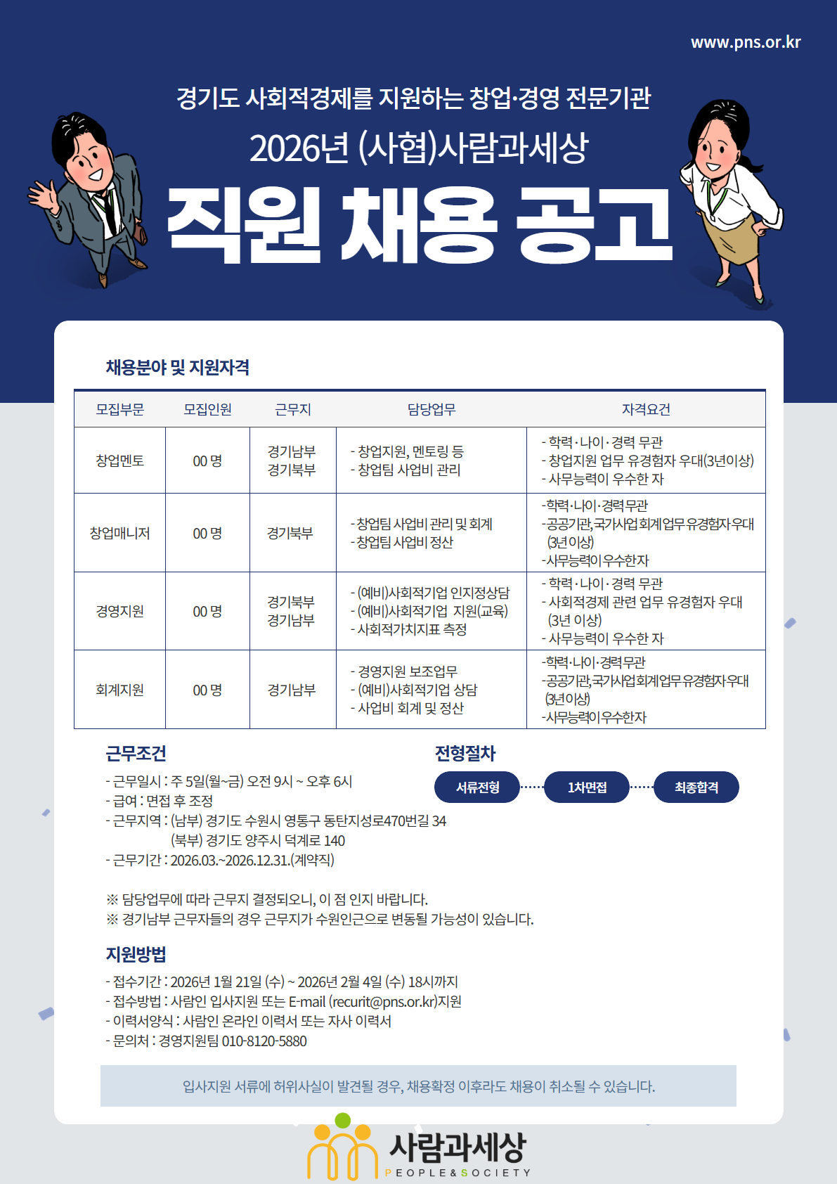 [°ø°í] 2026³â (»çÇù)»ç¶÷°ú¼¼»ó Á÷¿ø ä¿ë °ø°í