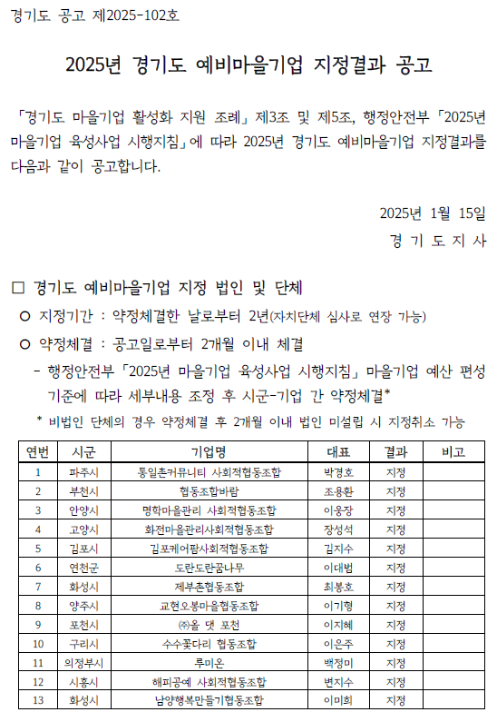 2025-102_°ø°í¹®_2025³â °æ±âµµ ¿¹ºñ¸¶À»±â¾÷ ÁöÁ¤ °á°ú (1).pdf