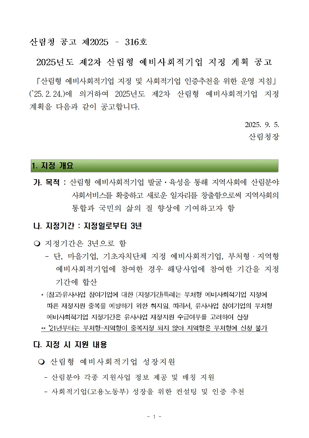2025³â Á¦2Â÷ »ê¸²Çü ¿¹ºñ»çȸÀû±â¾÷ ÁöÁ¤ °èȹ °ø°í¹®.hwpx