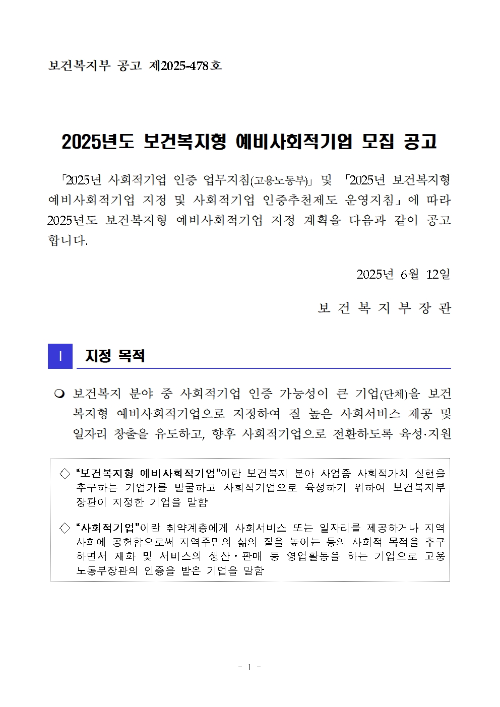 2025³âµµ º¸°Çº¹ÁöÇü ¿¹ºñ»çȸÀû±â¾÷ ÁöÁ¤(°ø¸ð) °ø°í¹®.hwpx