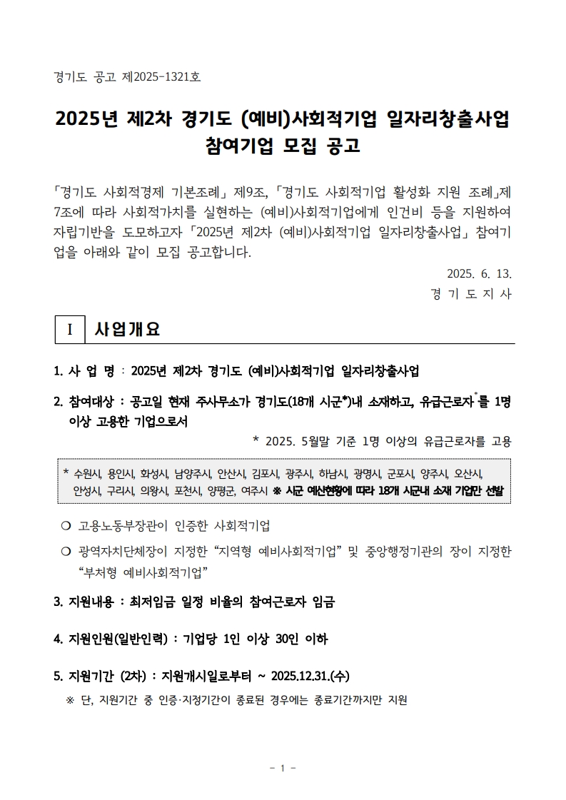 [SViz] 2025³â Á¦2Â÷ °æ±âµµ (¿¹ºñ)»çȸÀû±â¾÷ ÀÏÀÚ¸®Ã¢Ãâ»ç¾÷ Âü¿©±â¾÷ ¸ðÁý °ø°í