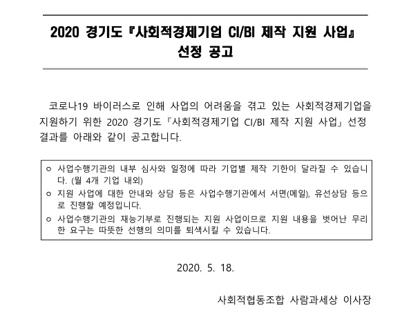 2020 °æ±âµµ ¡º»çȸÀû°æÁ¦±â¾÷ CI/BI Á¦ÀÛ Áö¿ø »ç¾÷¡» ¼±Á¤ °ø°í ¾È³»